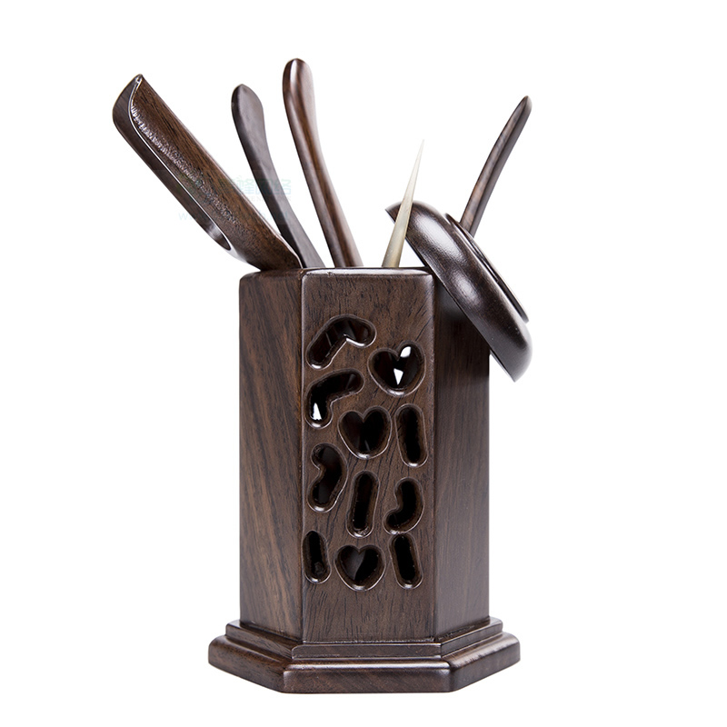 茶具配件实木茶道六君子茶夹功夫茶具竹制黑檀木组合套装